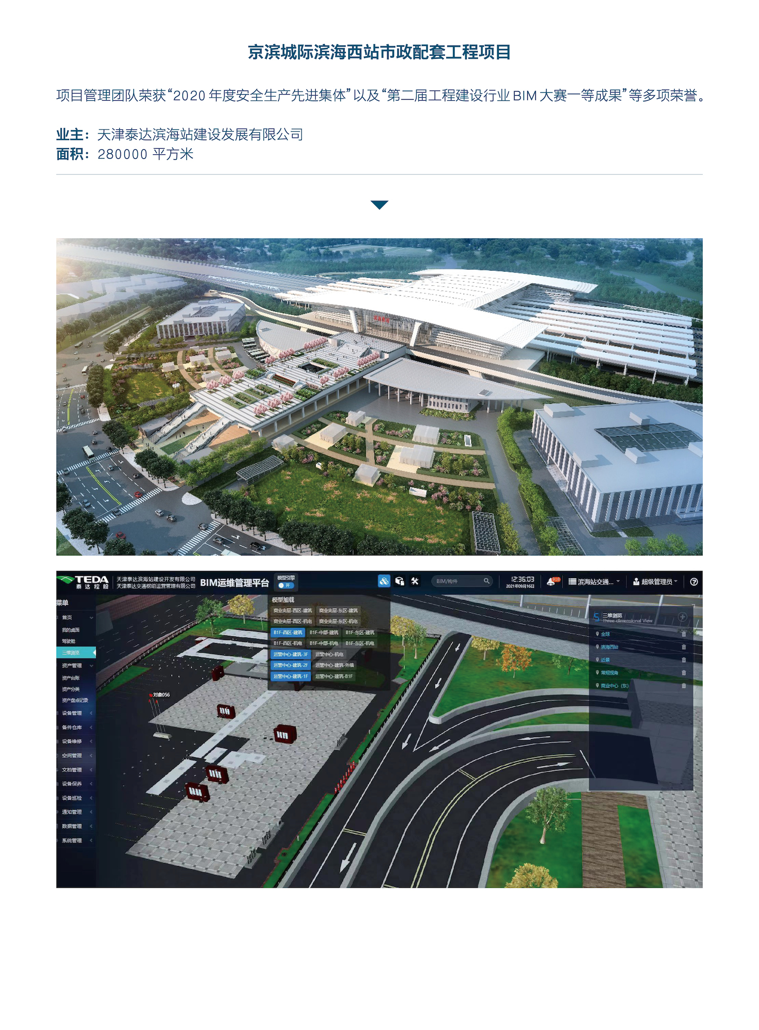 項目管理團(tuán)隊榮獲“2020 年度安全生產(chǎn)先進(jìn)集體”以及“第二屆工程建 設(shè)行業(yè) BIM 大賽一等成果”等多項榮譽。 業(yè)主:天津泰達(dá)濱海站建設(shè)發(fā)展有限公司 面積:280000 平方米